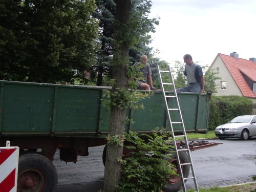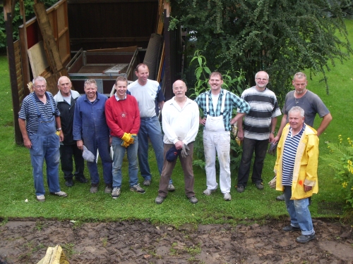 Am Mittwoch, den 11. Juli haben sich etliche Mitglieder der Männerturngruppe und der Nordic-Walking-Gruppe unter der Leitung von Andreas Seyer getroffen, um wie immer Sport zu treiben. Diesmal war es keine übliche Aufwärm- und Trainingsstunde und keine Walking-Runde durch LaPeKa, sondern ein schweißtreibendes Training mit 28 kg schweren Betonplatten. Sportkamerad Horst Melecky rief um Hilfe beim Entsorgen von alten Gehwegplatten auf seinem Grundstück. So wurden ca. 25 Tonnen Beton gestemmt und entsorgt. Ein herzliches Dankeschön für die Hilfe sagen Gabi und Horst Melecky