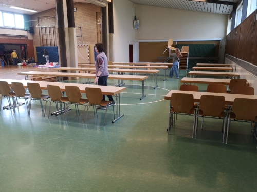 Schon am Sonntagmorgen traf sich eine große Helferschar, um die Halle einzuräumen und zu schmücken.