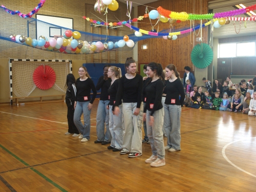 Hier sehen Sie das junge Team, das unser Sportlehrer Werner Bohnen um sich geschart hatte. Es gab vor der Veranstaltung ein Planungstreffen, bei dem Spiele geplant wurden und Aufgaben verteilt wurden. Der Vorstand musste sich um nichts kümmern.