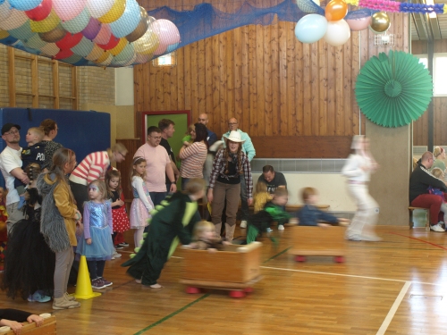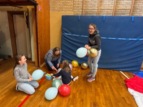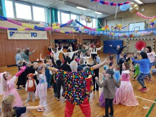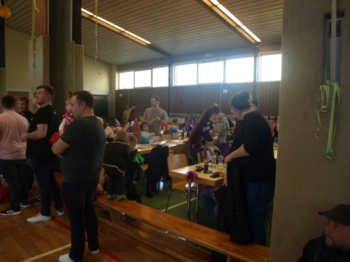 Trotz oder wegen herrlichen Sonnenscheins fanden 100 Kinder und 100 Erwachsene am Faschingsonntag, 2. März 2025, den Weg in die Narhalla Lasfelde, um ausgelassen beim Kinderfasching der TG mitzufeiern. Zum Empfang war für die Kinder ein Bewegungsparcour mit unserer neuen Rollenrutsche, einer zur Schaukel zweckentfremdeten Bank und anderen Teilen aufgebaut, sodass sich die Kinder erst einmal austoben konnten.