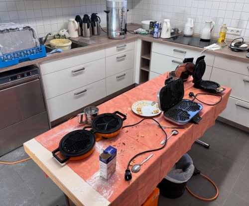 In der Küche gab es ein Team, dass schon früh genug den Waffelteig gerührt hatte, die Kaffeemaschinen in Gang gesetzt hatten und die Waffeleisen vorbereitet hatten.