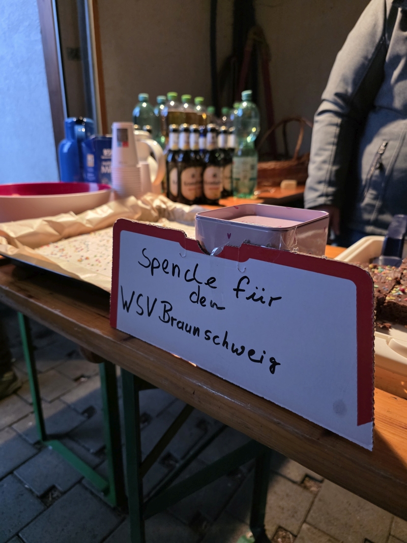 Werner und Birgit hatten eine Spendenbox für den WSV Braunschweig aufgestellt. 400 € wurden von den Teilnehmern gespendet und schon an den WSV überwiesen, der sich sehr gefreut hat. Wer den WSV unterstützen möchte: Über obigen Link findet man die Bankverbindung und alle weiteren Informationen.