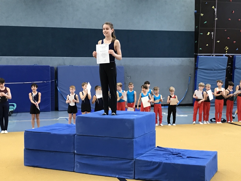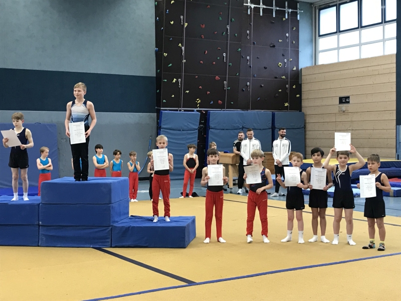 Eine kleine Überraschung stand dann für Ole Zinnecker auf dem Plan. Er turnte eine Jahrgangsstufe höher und wurde mit 41,95 Punkte in diesem Jahr Bezirksmeister.