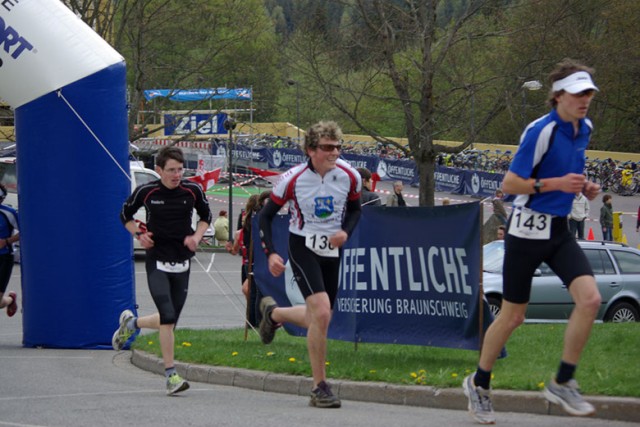 Zuerst galt es 4,5 KM zu laufen, dann 19 KM Radfahren und zum Abschluss noch mal 3 KM Laufen. Die Strecken waren komplett abgesperrt, hatten aber ein sehr bergiges Streckenprofil. Sie verlangten den Athleten alles ab. Nils Mackensen benötigte 1:11:26 Stunden für die Strecke und belegte den 1. Platz in der Juniorenwertung und den 8. Platz in der Gesamtwertung. Tobias Alms erreichte in 1:12:14 Stunden den 2. Platz in der Jugend A Platz 9 in der Gesamtwertung und Johannes Lilienkamp in 1:20:17 den 4. Platz und Platz 17 in der Gesamtwertung.