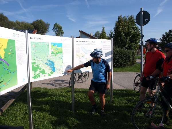 Unterwegs las uns Klaus von den Hinweistafeln rund um die Altmühl vor.