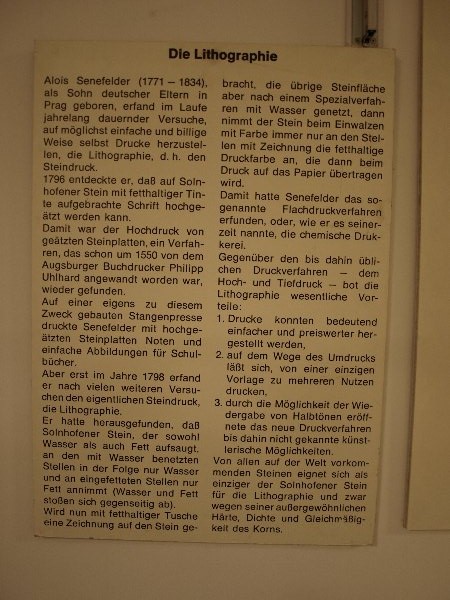 Im Fossilien- und Steindruckmuseum wurden Ausstellungsstücke aus den Kalkschiefersteinbrüchen von Solnhofen und Umgebung besichtigt. Außerdem informierten sich die drei Kulturfreaks über die Technik des Steindrucks (Lithographie).