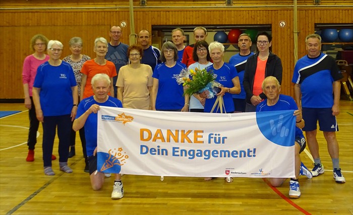 Für mehr Anerkennung und Wertschätzung für freiwillig und ehrenamtlich Engagierte zu sensibilisieren und diese aktiv zu leben ist das Ziel der Initiative "Ehrenamt überrascht" des Landessportbundes Niedersachsen. Schon mehrfach wurden bei der TG La-Pe-Ka die Leistungen einzelner ehrenamtlicher Mitarbeiterinnen oder Mitarbeiter im Rahmen einer Überraschungsaktion hervorgehoben. Diesmal hatte der Vorstand der TG La-Pe-Ka Christine Schrader für diese Ehrung nominiert. Am Montag, 21. März 2022, überraschte Renate Wagner vom Vorstand des Kreissportbundes Göttingen-Osterode Christine Schrader während der Damengymnastikstunde mit dieser Ehrung.