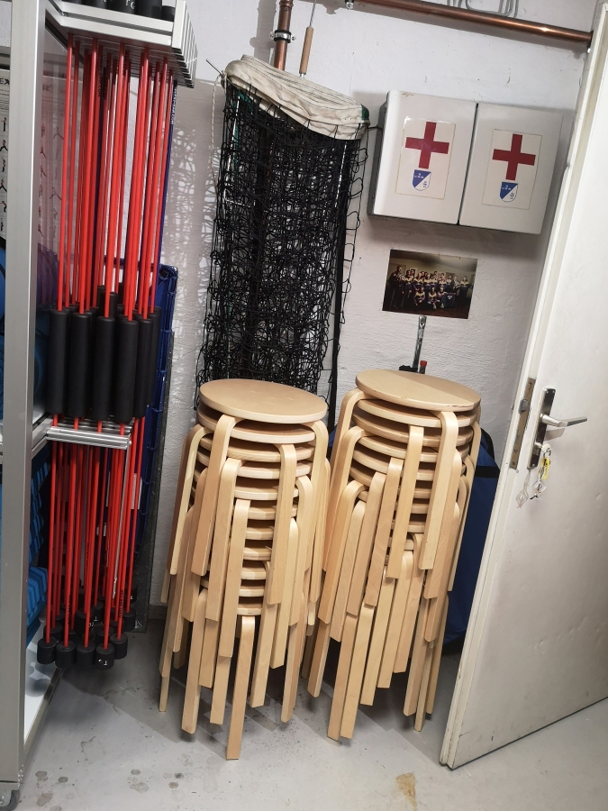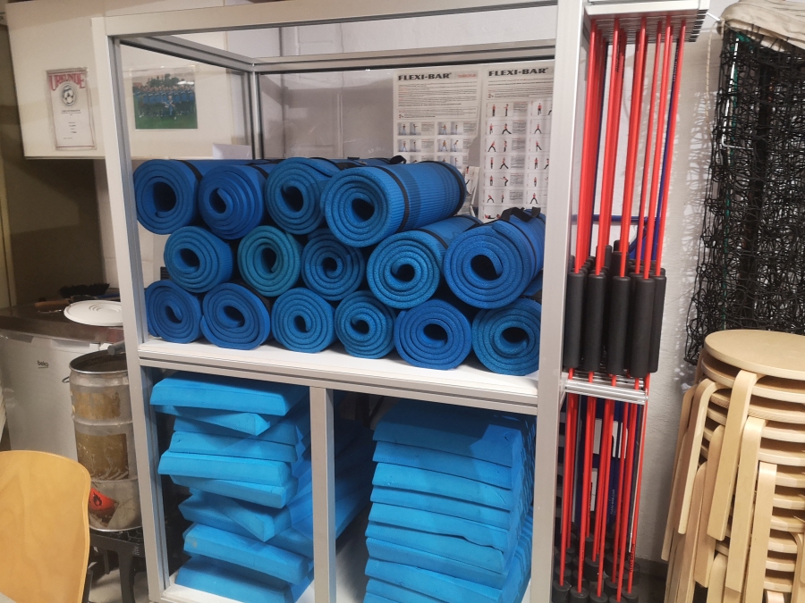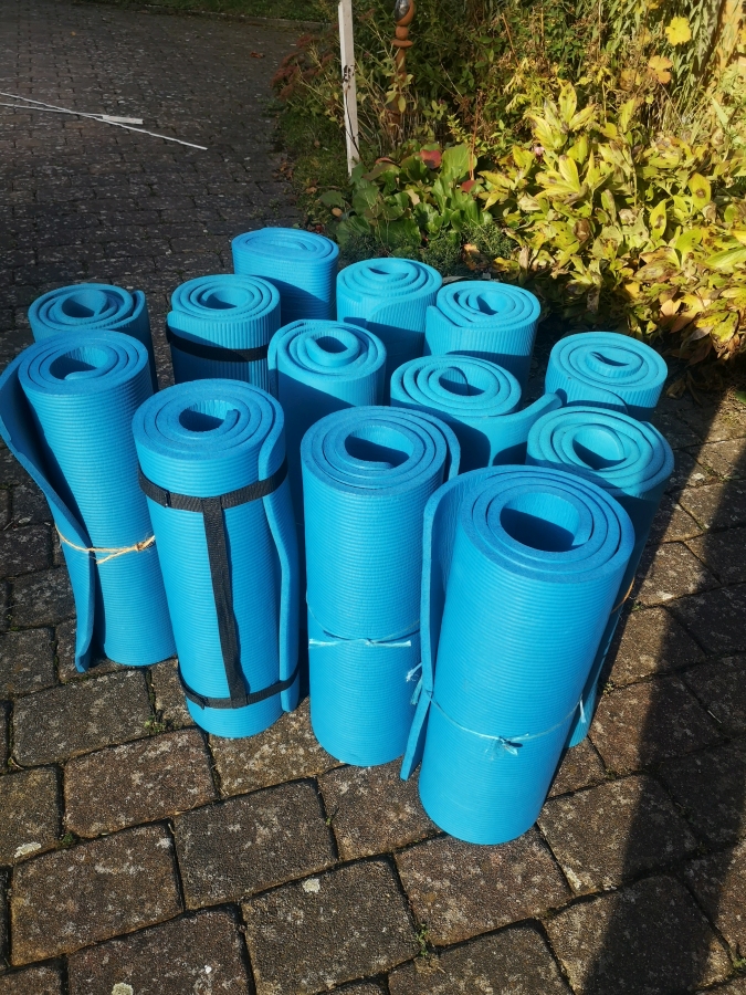 Da viele Turnerinnen und Turner zu Yoga, Rückenfit etc. ihre eigenen Matten mitbringen, konnten wir etliche Gymnastikmatten aussortieren. So sieht das nun aus: