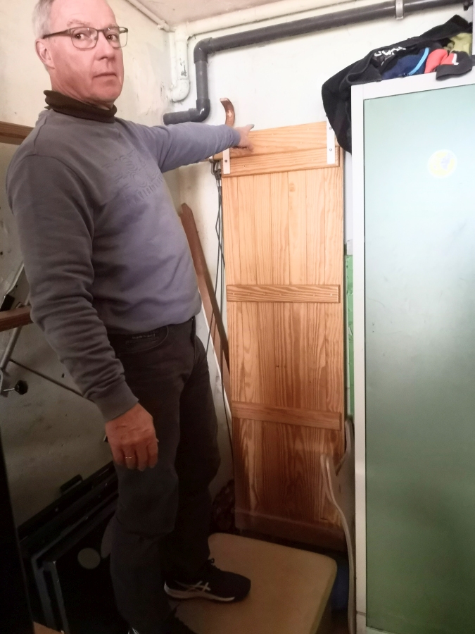 Für das Eltern- und Kindturnen möchte die TG eine Rollenrutschbahn beschaffen. Werner, Kristina und Volker fanden dann einen Platz in dem Geräteraum, der vorwiegend vom Tischtennisklub genutzt wird. Vor die Holzrutsche kann man die Rollenrutschbahn stellen und mit einem Gurt oder ähnlichem sichern.