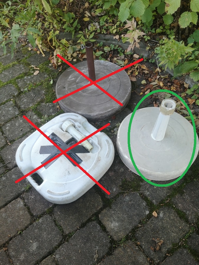 Bei den Schirmständern, die verschrottet werden sollten, fragte Volker erst noch einmal im Vorstand nach. Der grün markierte muss zurück in den Geräteraum. Kein Problem.